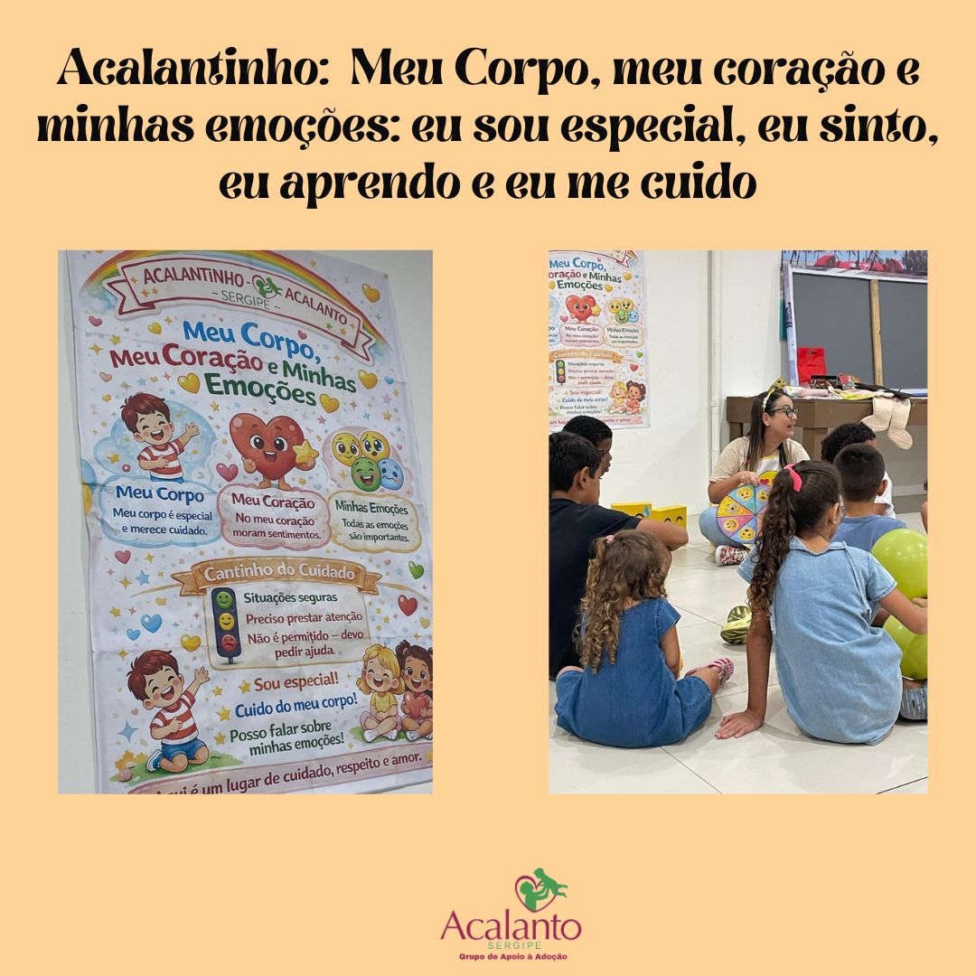 Paralelamente, no Acalantinho, espaço destinado às crianças durante o encontro, o tema foi trabalhado de forma lúdica e adequada à faixa etária, sob a condução da neuropsicopedagoga Nathassia Leandro. Com a proposta “Meu corpo, meu coração e minhas emoções: eu sou especial, eu sinto, eu aprendo e eu me cuido”, a atividade promoveu uma vivência sensível voltada ao autoconhecimento, à expressão das emoções e à proteção, reforçando o compromisso com o cuidado integral e o alinhamento entre o que é discutido com os adultos e vivenciado pelas crianças.