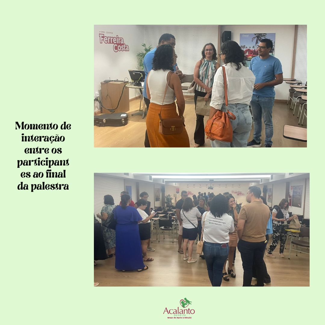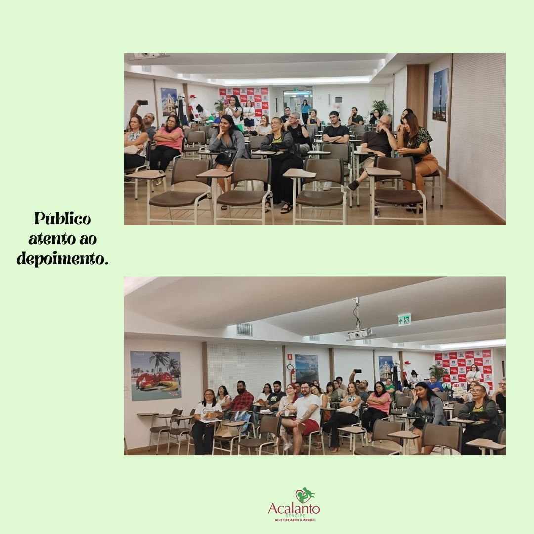 O encontro teve início com uma dinâmica de integração entre os participantes, criando um ambiente acolhedor para o diálogo, em seguida Sara e Bruno relataram como foi a decisão de adotar até a chegada de Anna. Eles destacarm os desafios, aprendizados e alegrias que marcaram essa caminhada e a escolha pela adoção tardia. Ao final, foi aberto um espaço para perguntas e troca de experiências entre os presentes, fortalecendo vínculos e aproximando ainda mais famílias, adotantes e voluntários do Acalanto.